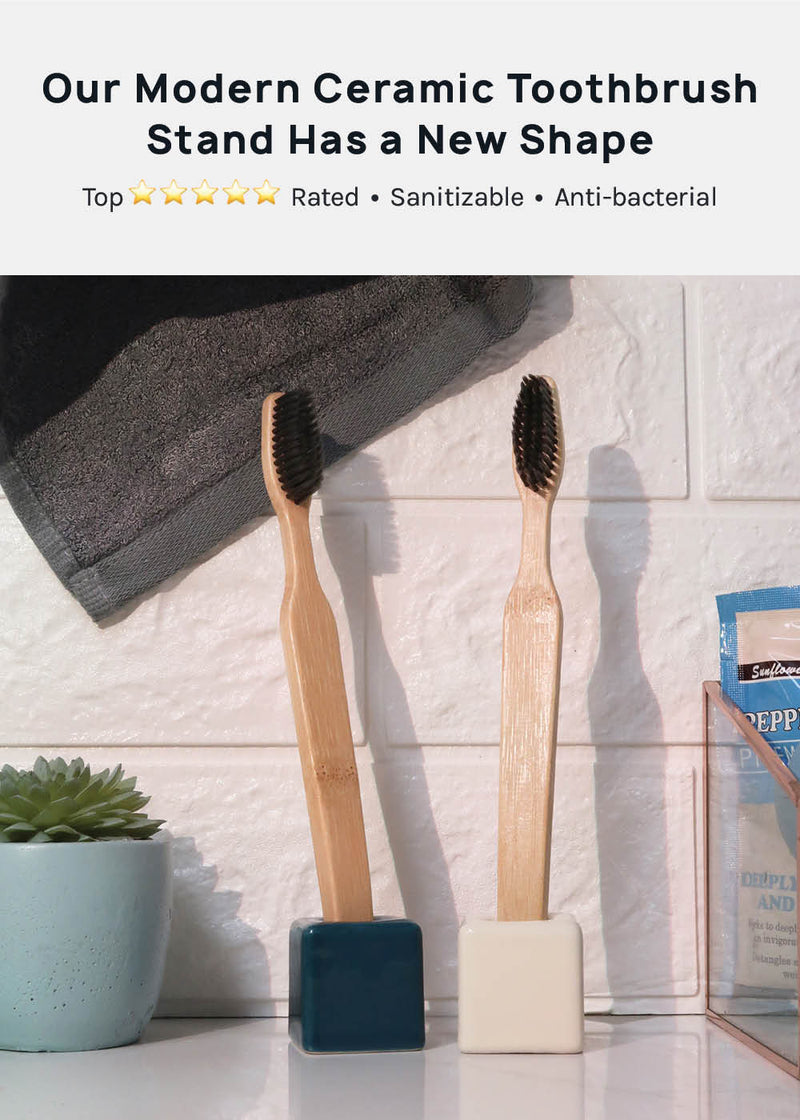 Minimal and Modern ceramic toothbrush stand. This chic stand is perfect for your vanity top to hold your toothbrush to keep clean and dry.