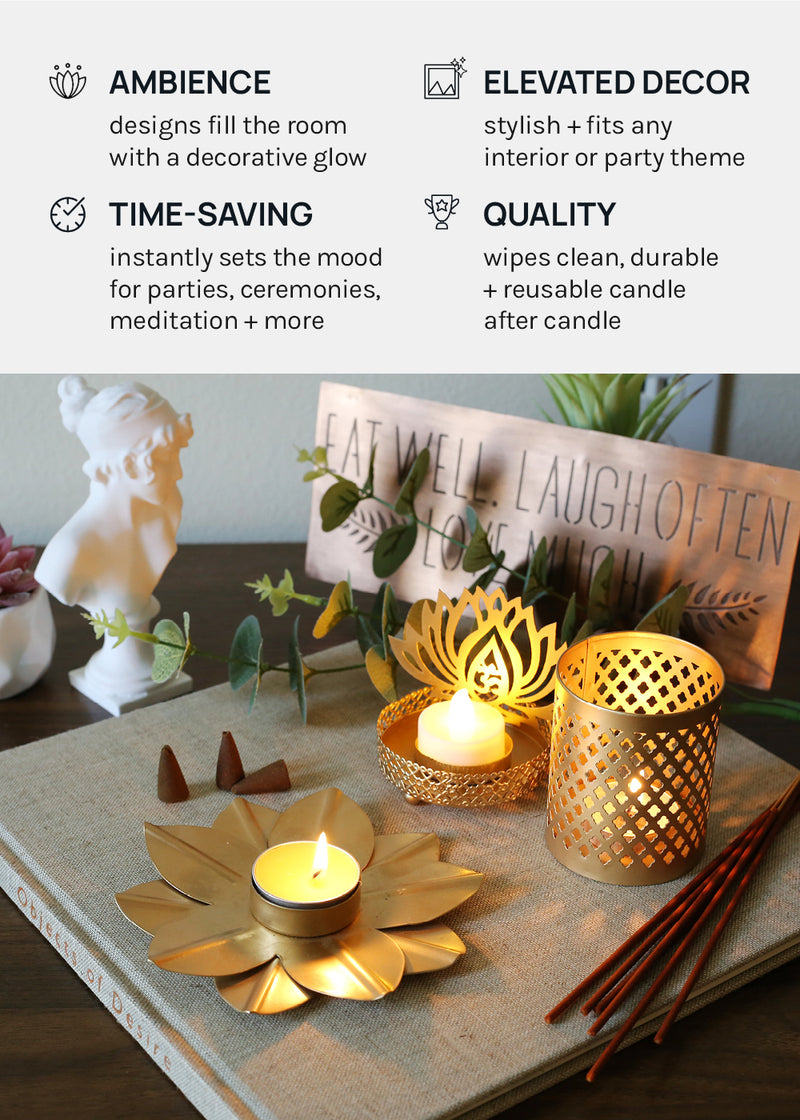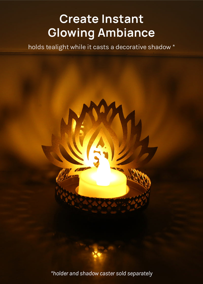 Our shadow casters create a relaxing ambiance for daily household use or self-care time: meditation, yoga, bath/spa time, + more. When paired with our tealight holder, it makes a thoughtful gift for housewarmings, special events, + more.