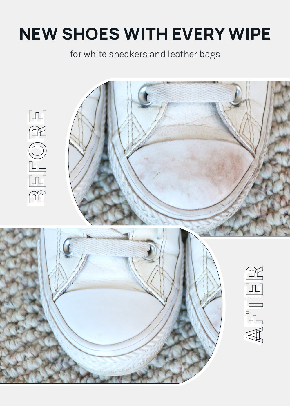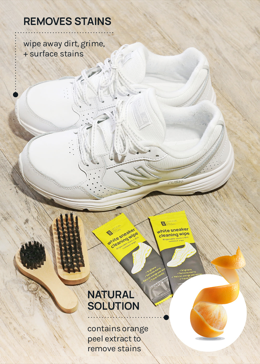 emoves grime, minor stains, + signs of wear from white sneakers + shoes, white leather bags, + other items. Removes bacteria + germs.