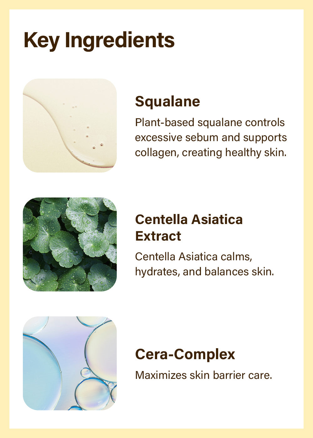 Our serum features a cera-complex that includes ceramides, madecassoside, madecassic acid, asiaticoside, and asiatic acid, offering a holistic solution to repair your skin.