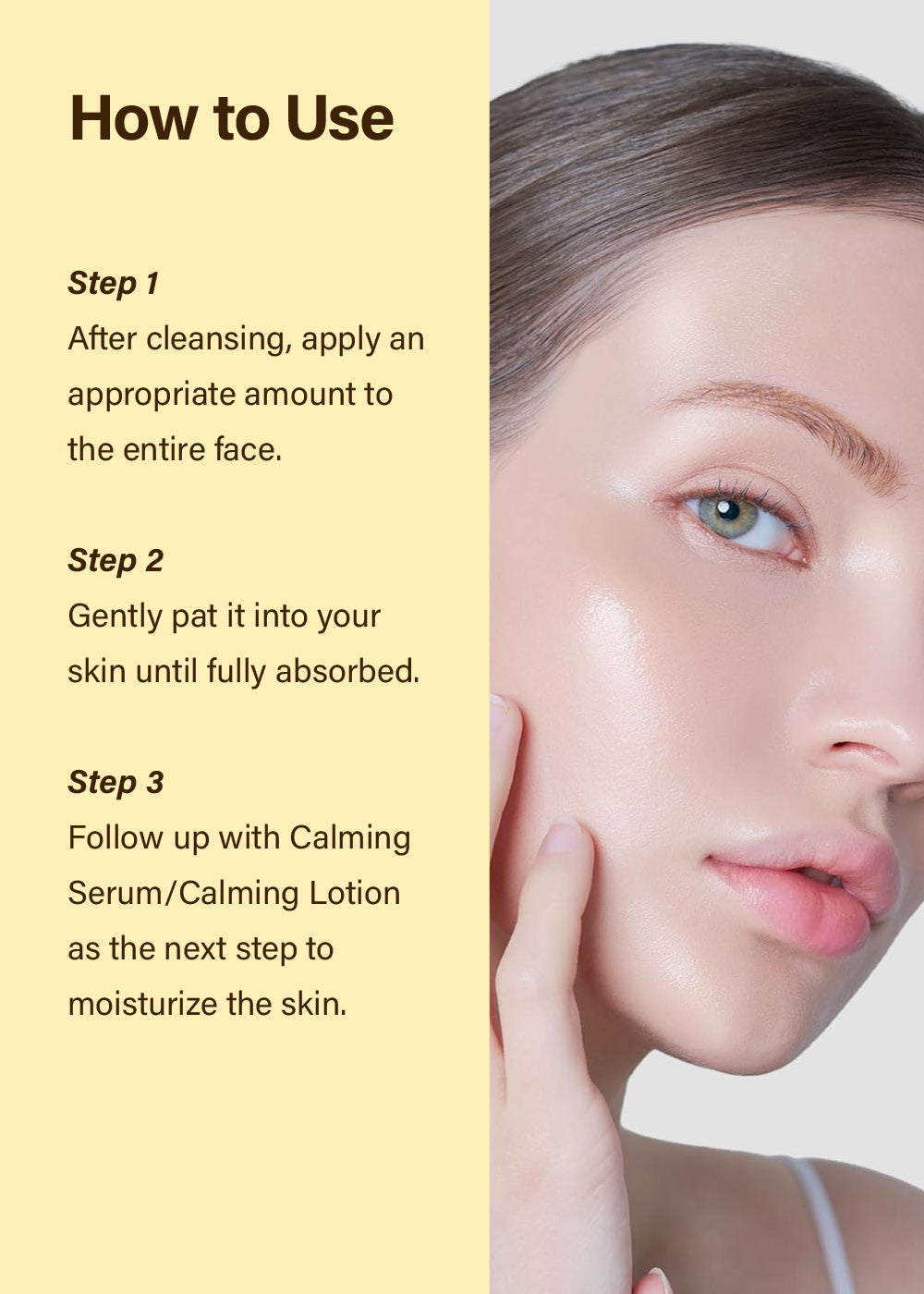 Follow up with Calming Serum/Calming Lotion as the next step to moisturize the skin.