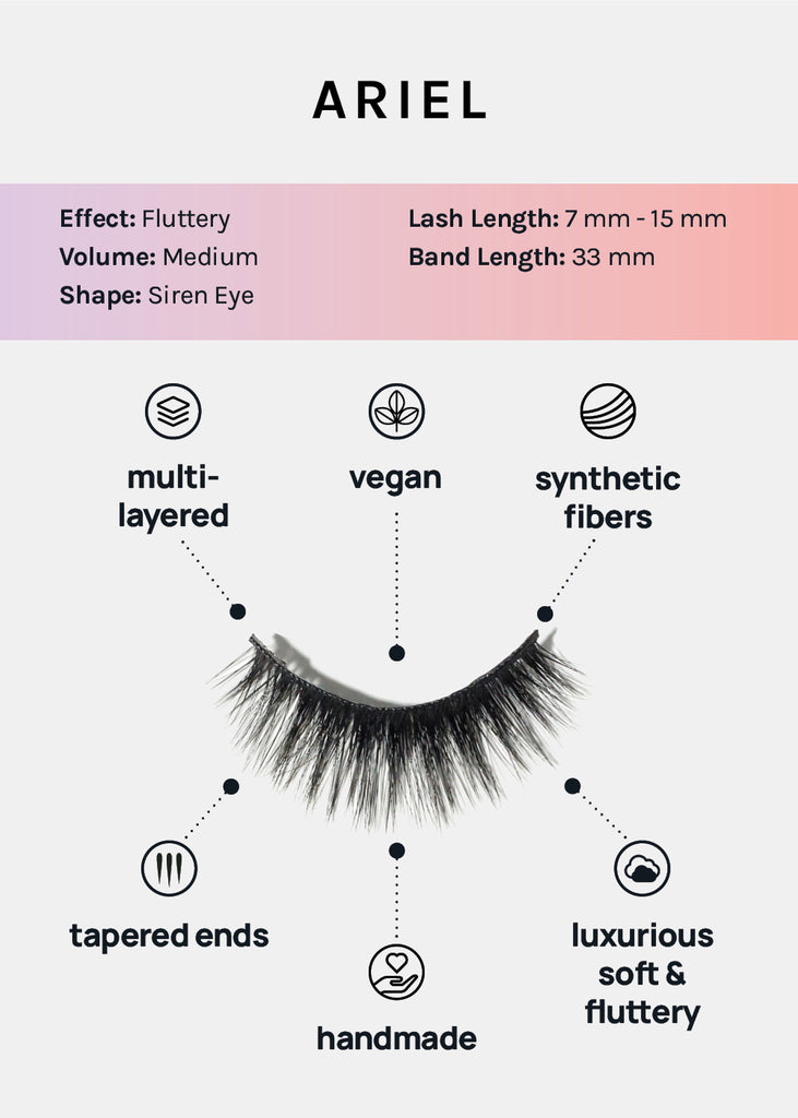 These lashes are vegan, cruelty-free, and made from synthetic fibers. The band is thicker, therefore can be reused multiple times with proper care and cleaning!