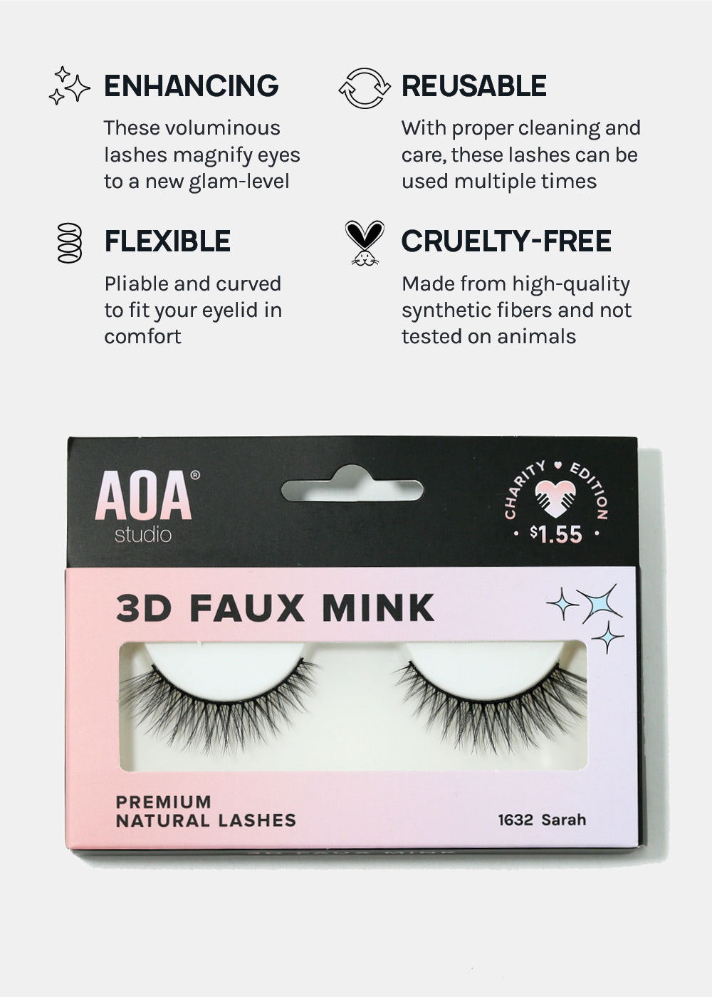 These lashes are vegan, cruelty-free, and made from synthetic fibers. The band is thicker, therefore can be reused multiple times with proper care and cleaning!