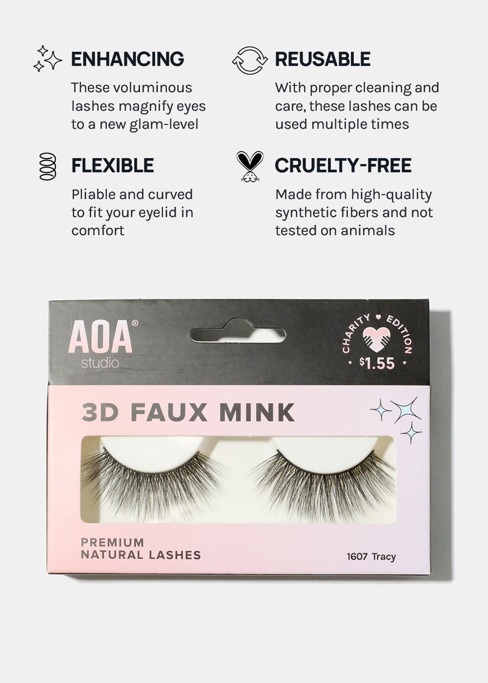 These AOA Studio 3D Faux Mink Eyelashes are luxurious, glamorous and soft while being Cruelty Free! The Faux Mink Eyelashes are more layered and fuller than the original AOA Studio Eyelashes.