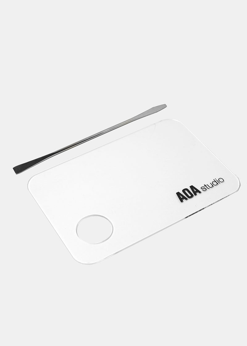 This lightweight, clear acrylic palette is used for mixing creamy products.