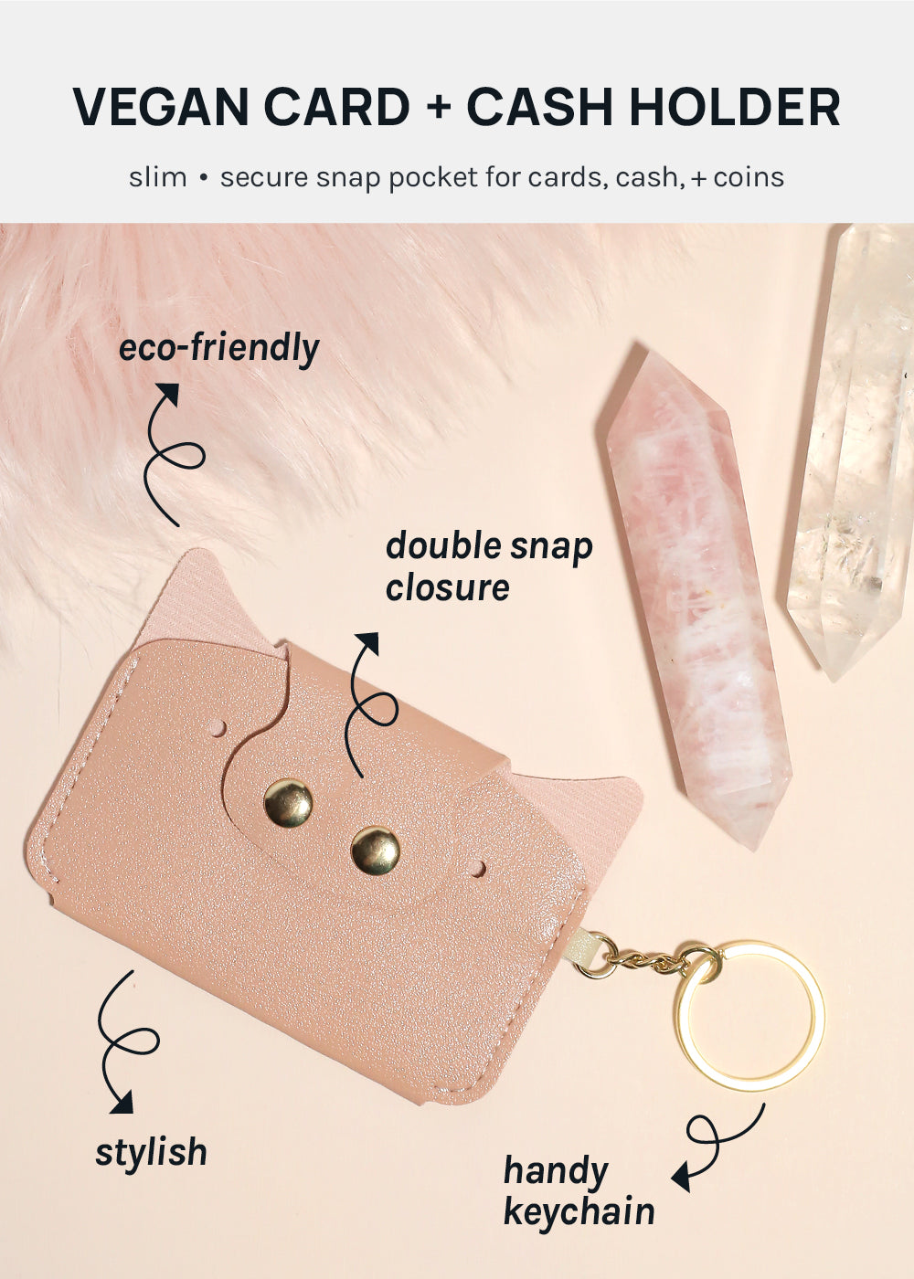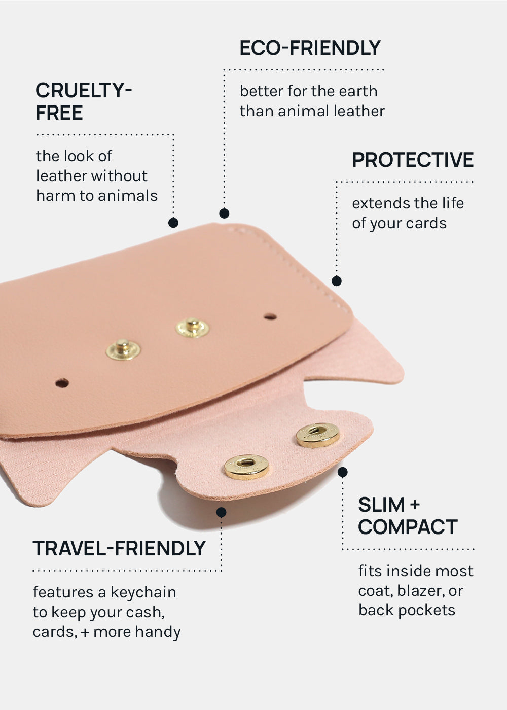 TRAVEL-FRIENDLY features a keychain to keep your cash, cards, + more handy