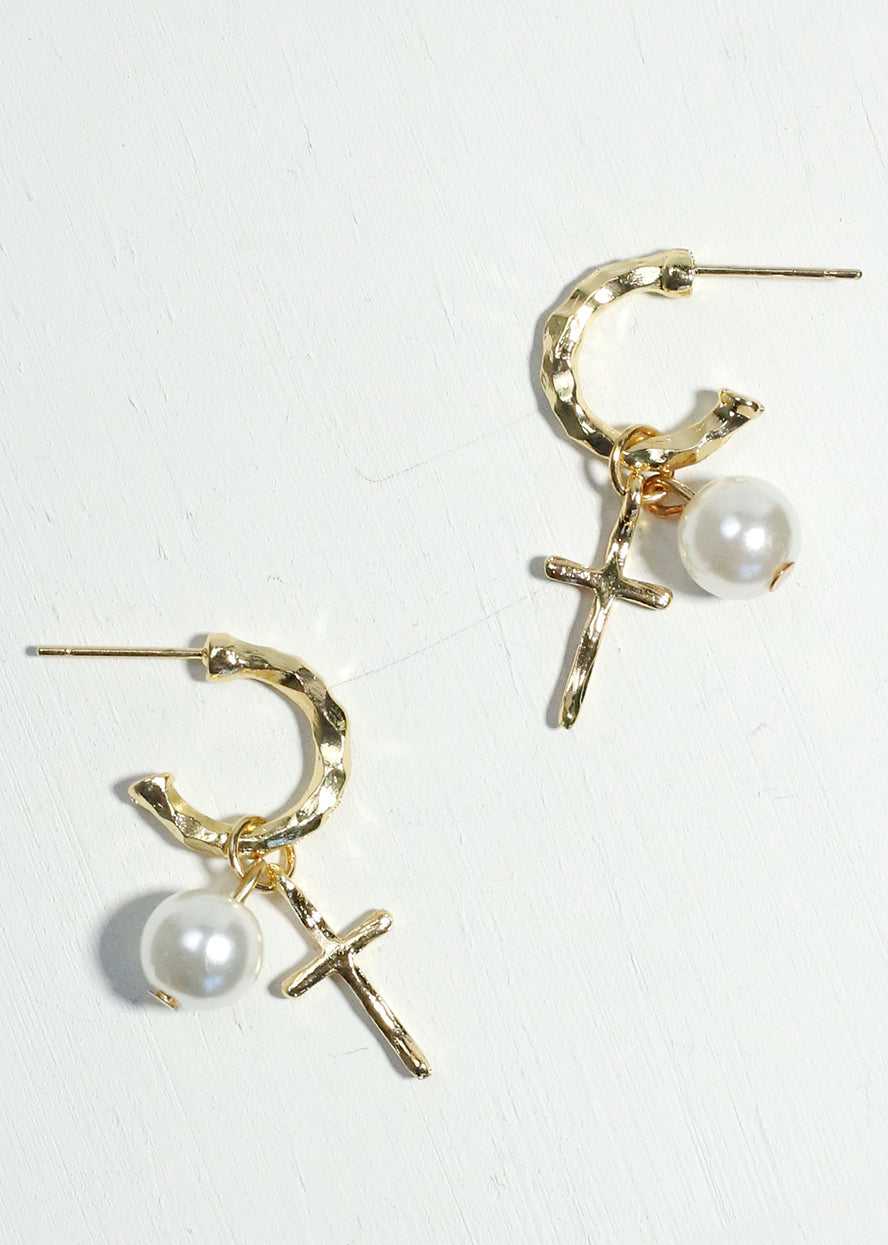 Pearl & Cross Dangle Earrings
