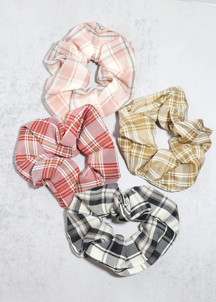 Shop now and enjoy effortless style with our plaid scrunchies!