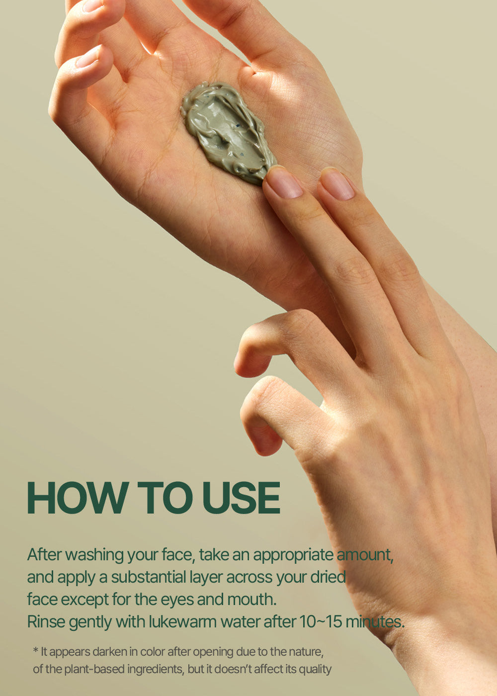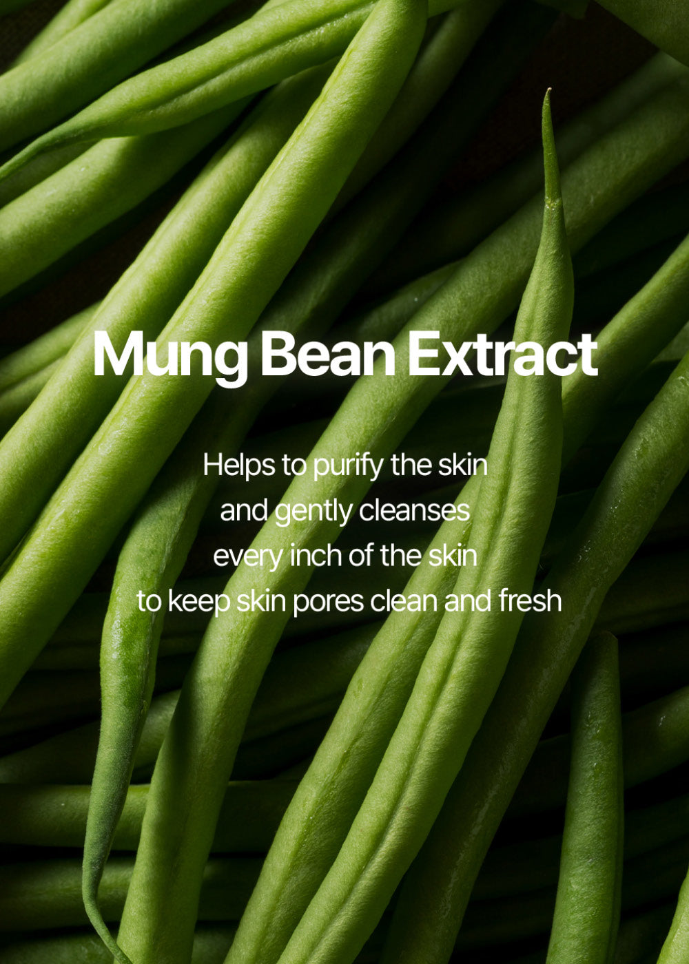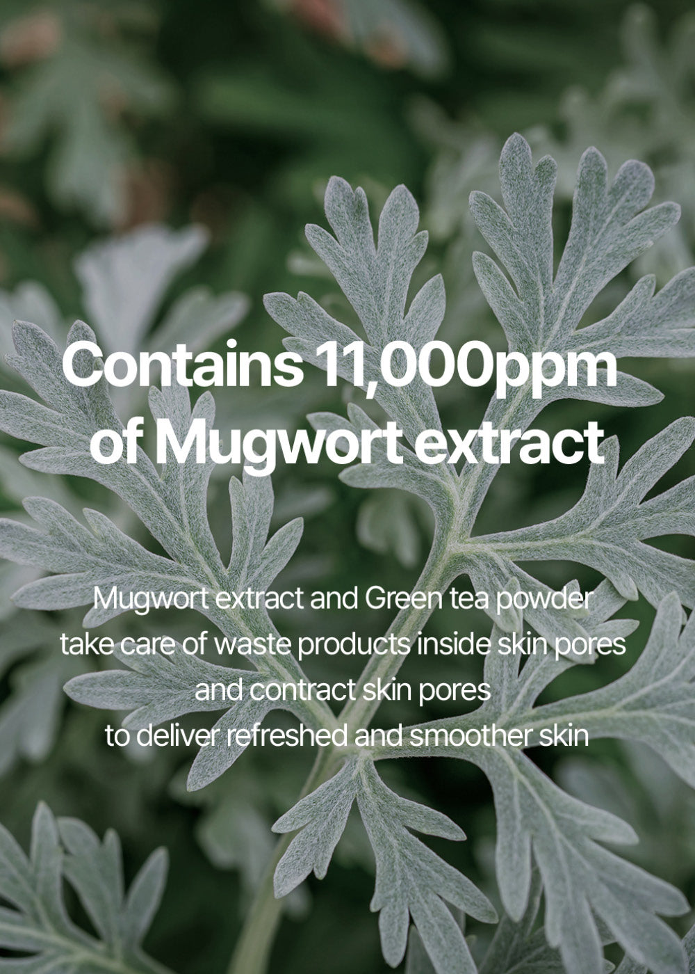 11,000ppm of Mugwort Extract contained in the product cleanses every skin pores to completely remove old waste products, making refreshed and smoother skin. Mung Bean extract purifies the skin and gently cleanses every skin pores clean and fresh.