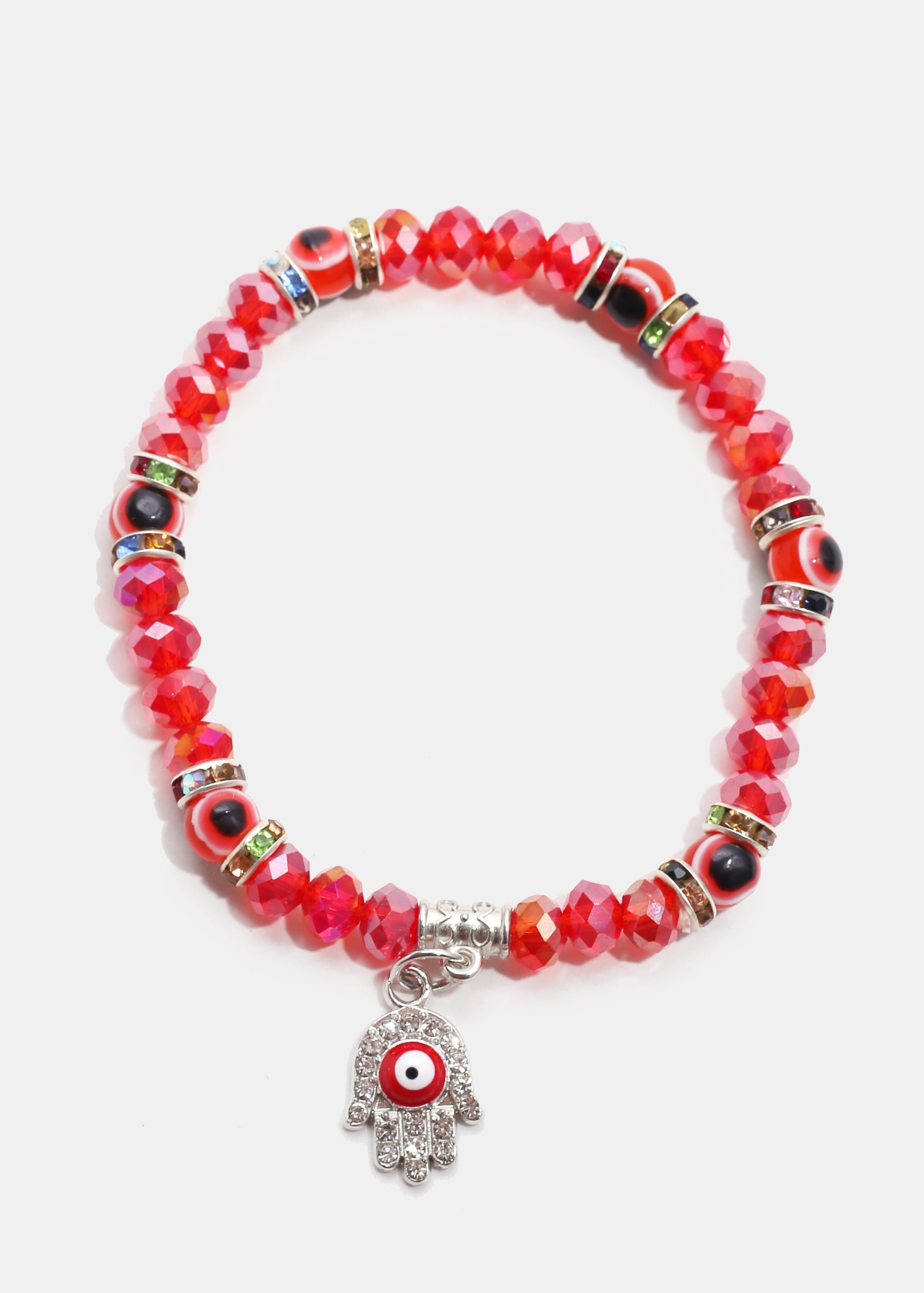 Red Hamsa Hand Bracelet with Multi Rhinestones