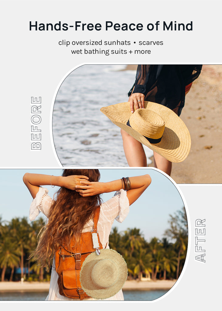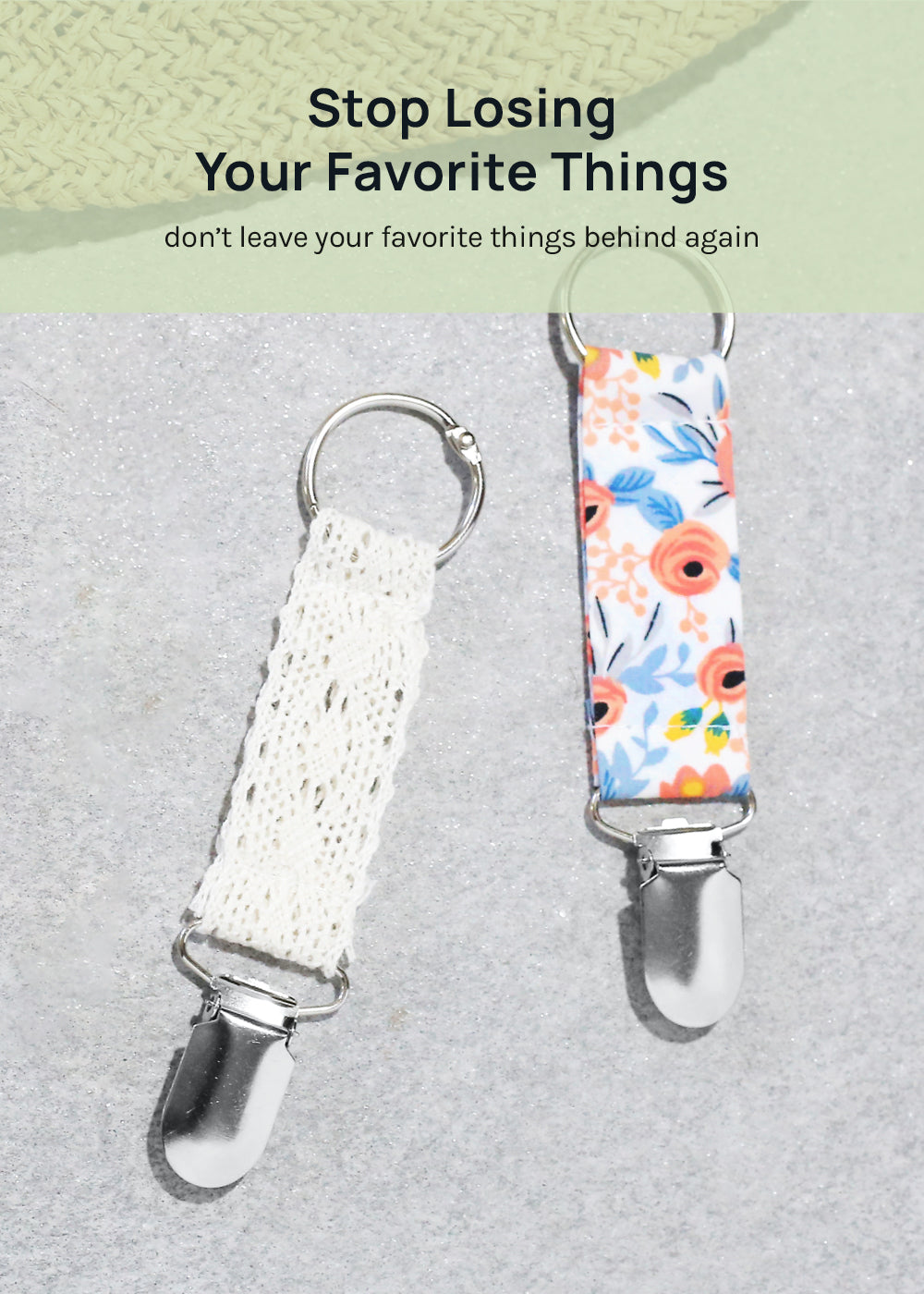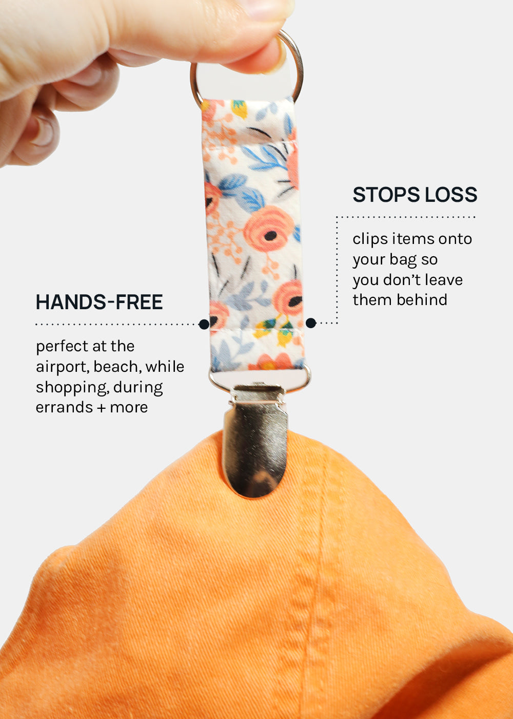 Keep hands free + accessories from being lost with our Hat Clip that attaches hats, gloves, + scarves to your tote bag, backpack, purse, + more. Our Hat Clip keeps items handy + ready to use while camping, running errands, traveling, + more. Great for train or ski lift tickets, hair bands, or anything else you want.