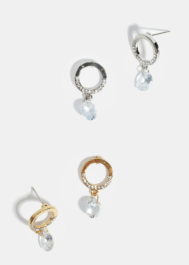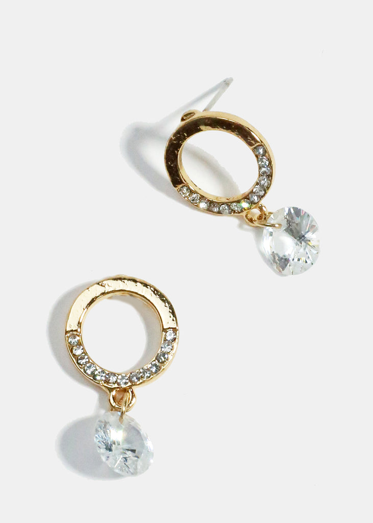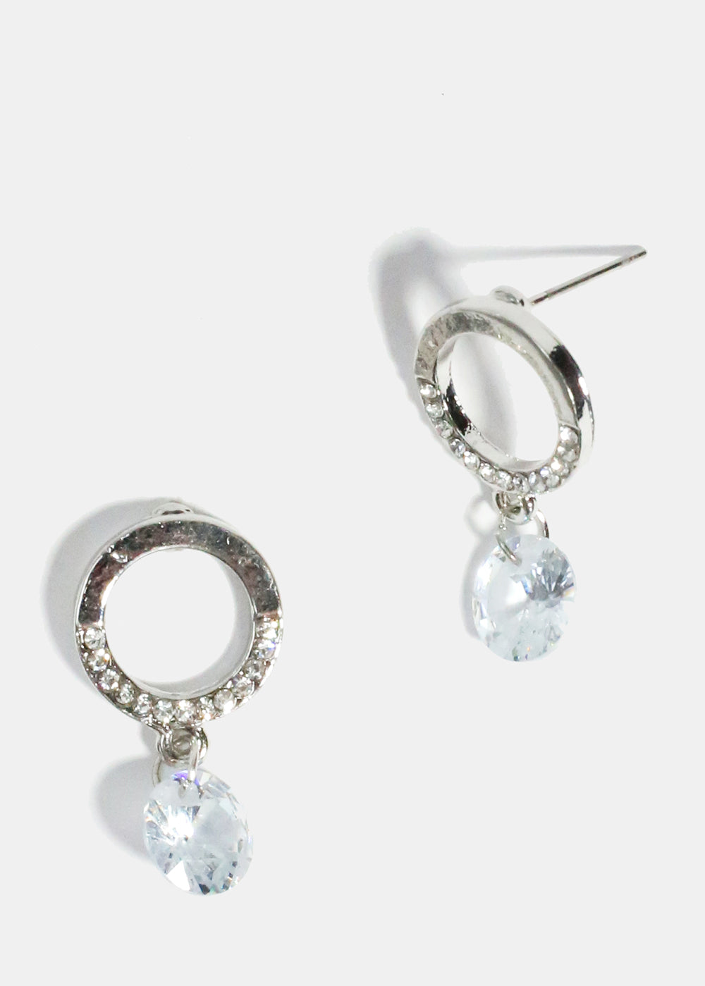 This pretty earrings featuring a stunning rhinestone studded circle that you can style with all of your looks. Add these beautiful earring for the perfect pop of sparkly and stylish look.