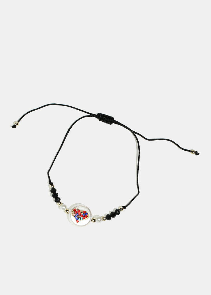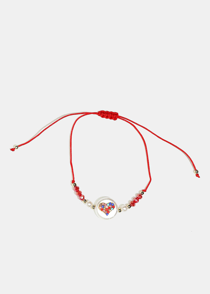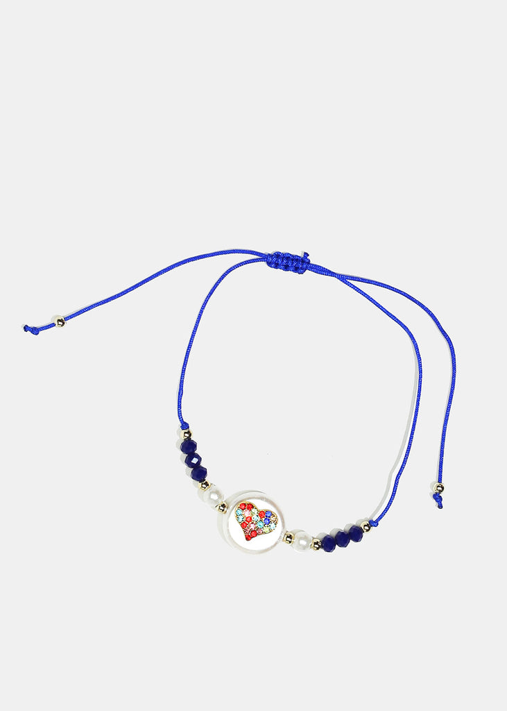 A stylish rhinestone heart charm drawstring bracelet featured in multiple colors! Collect them in every color.