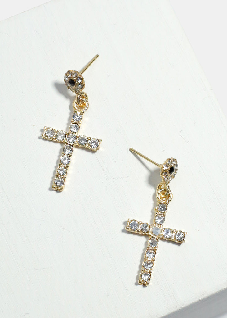 Rhinestone-Studded Cross Dangle Earrings