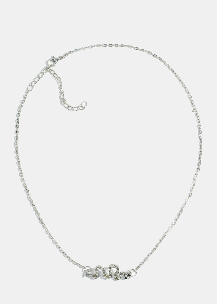Sparkly rhinestone-studded snake necklace! A stylish necklace that will compliment your everyday look.