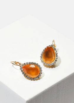 Rhinestone-Studded Teardrop Gemstone Earrings