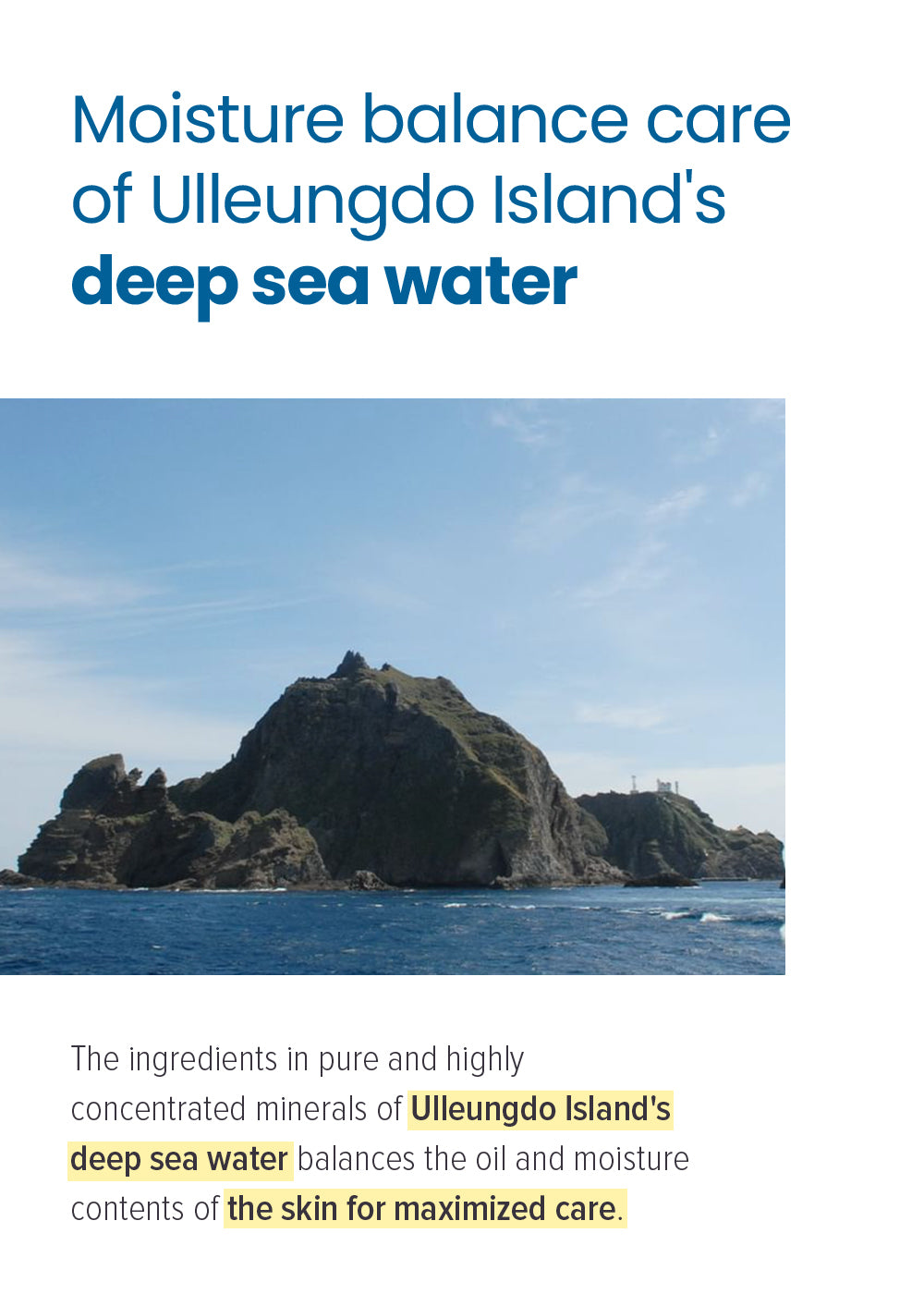 - Contains deep sea water from Ulleungdo Island which is rich in minerals.