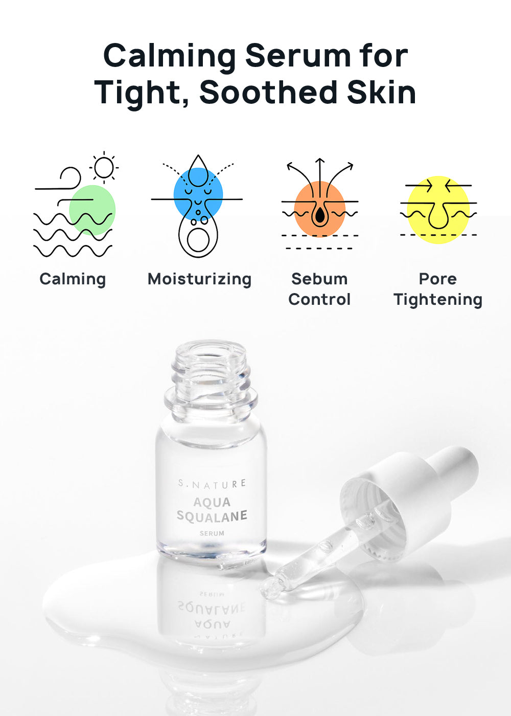 A calming serum recharges dry and tired skin with deep moisture. Enriched with Witch Hazel Extract to help tighten enlarged pores and control excessive sebum production. Features a rich concentrated texture while enabling quick absorption with minimal irritation. Offers a mild calming effect for soothing skin from daily irritation and external aggressors.