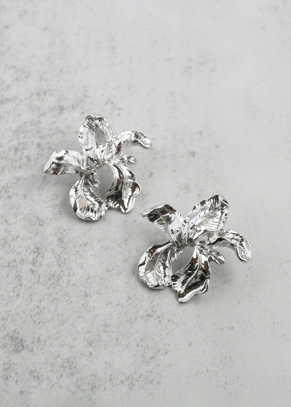 Make a statement with these stunning silver iris flower earrings, designed to capture the delicate beauty of nature. Each earring features intricate petal details with a textured finish that mimics the elegance of real iris blooms.