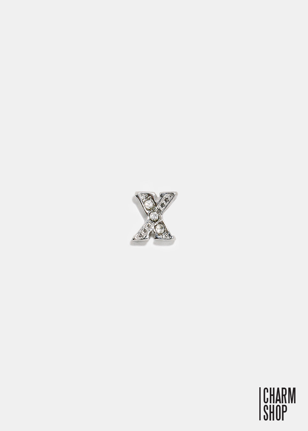 Silver X initial with rhinestones locket charm. These initial charms are the perfect addition to your locket collection. Spell something out (like "I DO"), add yours or a loved one's initials, or show your team spirit by adding your team's initials!