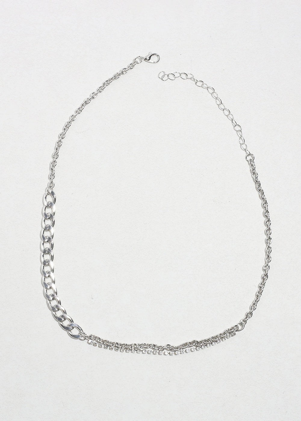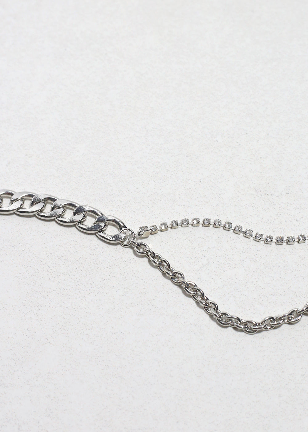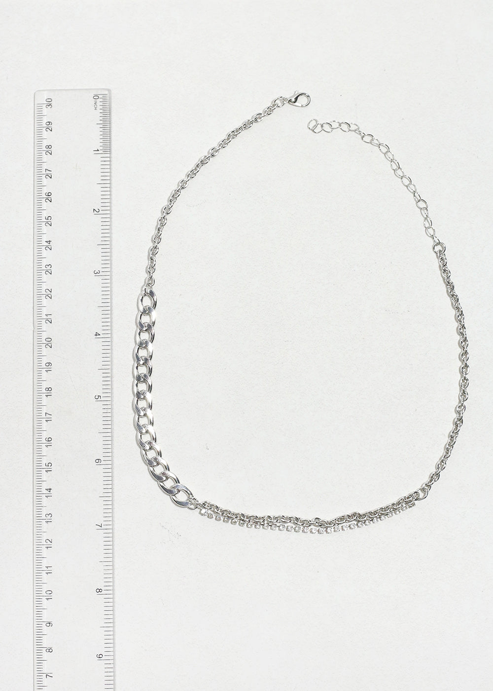 Elevate your everyday style with this layered silver chain necklace, designed to strike the perfect balance between bold and chic. Featuring a mix of chunky links, delicate chains, and a subtle rhinestone detail, this necklace adds dimension and edge to any outfit. Its adjustable clasp ensures a comfortable fit, making it versatile enough to wear as a choker or longer layering piece.