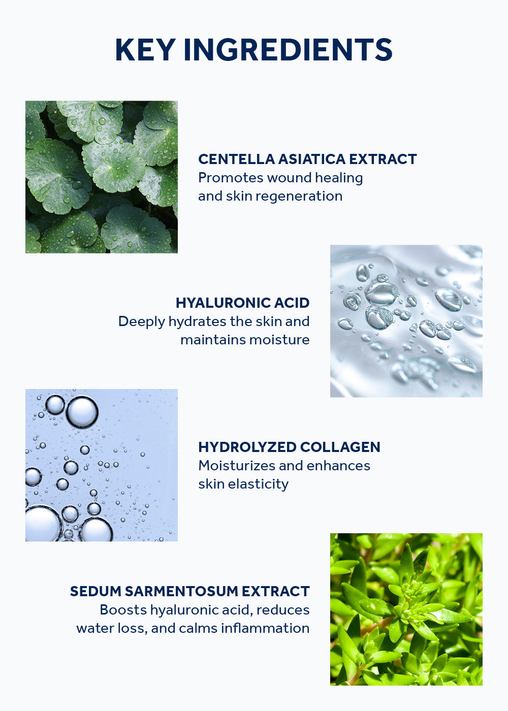 Centella Asiatica Extract, Hyaluronic Acid, Hydrolyzed Collagen