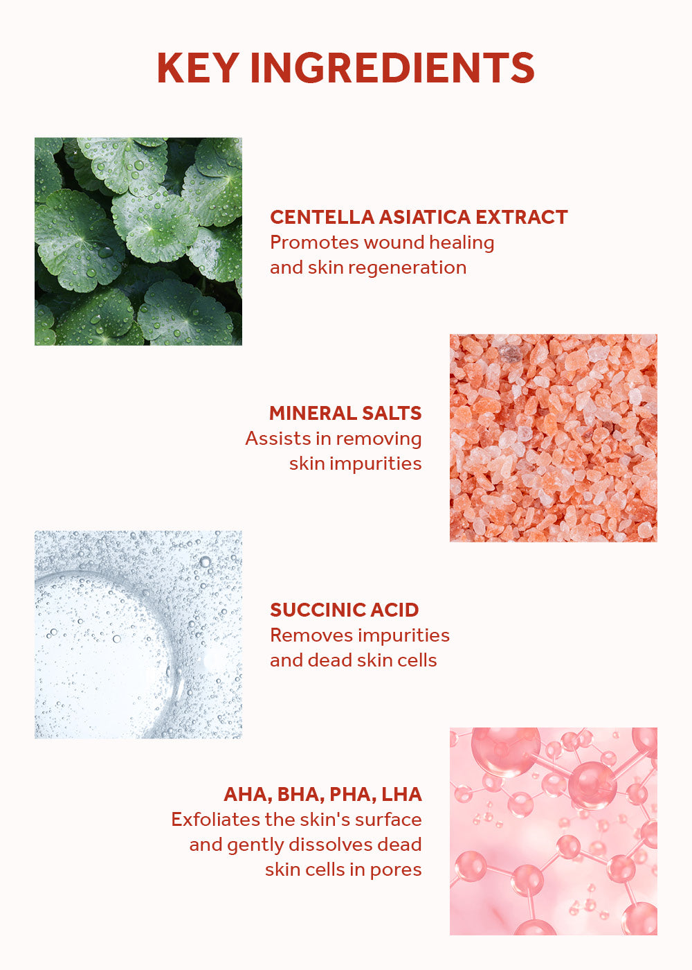 Centella Asiatica Extract, Himalayan Pink Salt, Succinic Acid