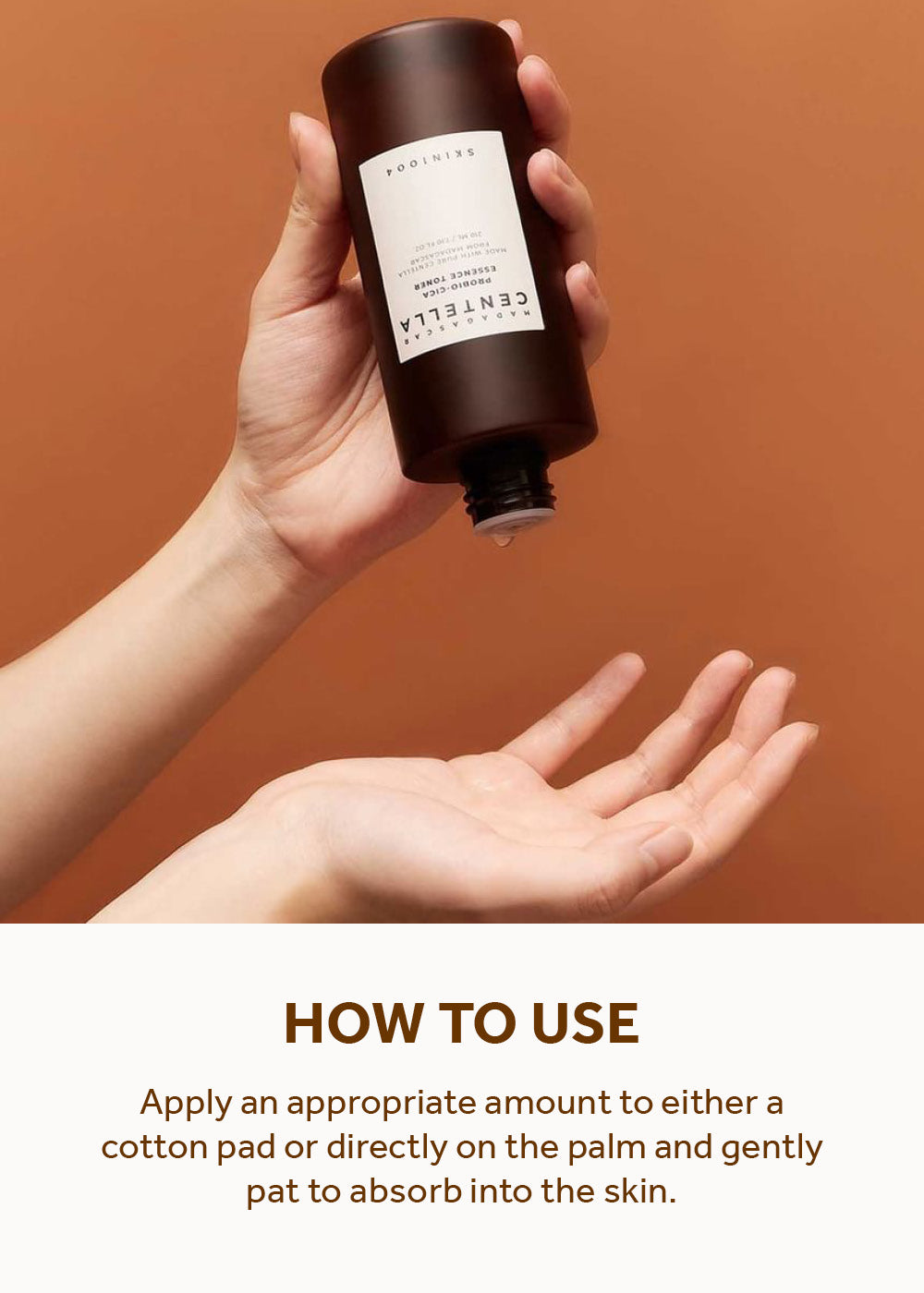 A rich essence toner with fermented Centella, 5 Hyaluronic acids and Ceramide NP soothes and moisturizes the skin.