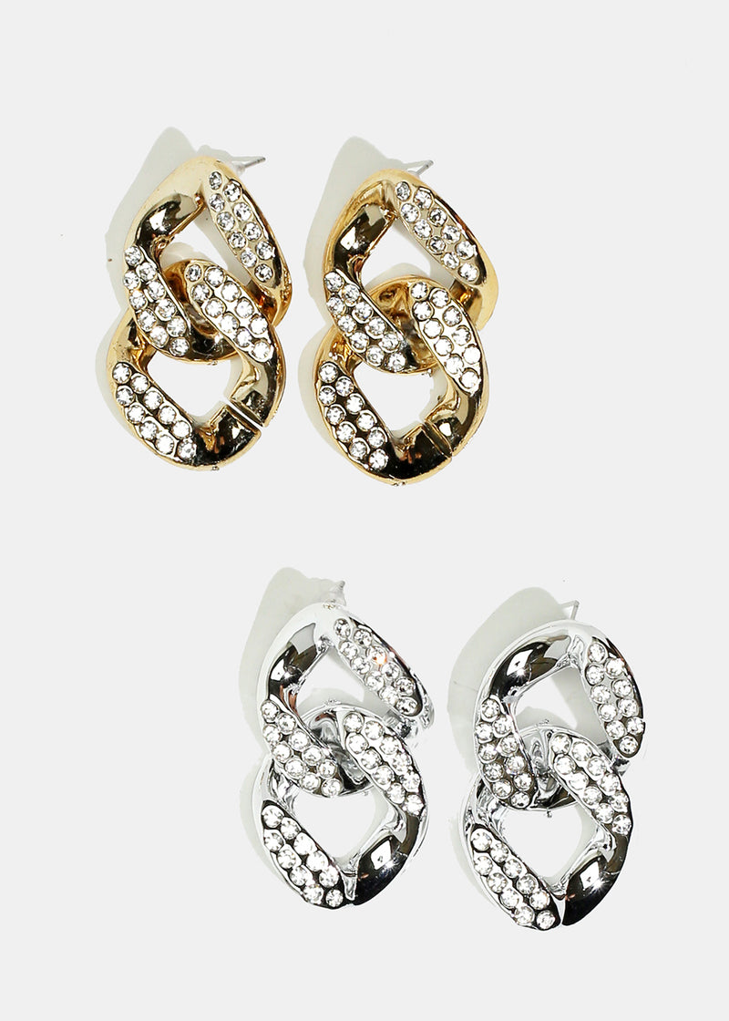Glamorous rhinestone-studded chain earrings in gold and silver! Unique pair of earrings that you can style with your night-out looks!