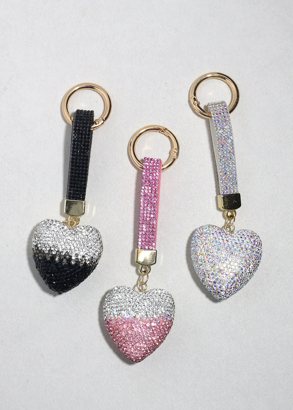 Sparkly accessories lovers, cute bag charms, heart keychains, trendy key accessories, and giftable fashion finds.