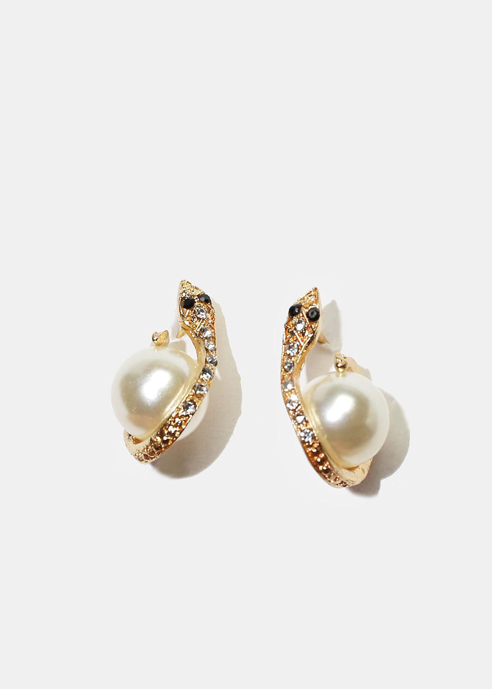 Sparkly snake and pearl stud earrings that you can style with your everyday look! Super cute earrings for the perfect pop of sparkle!