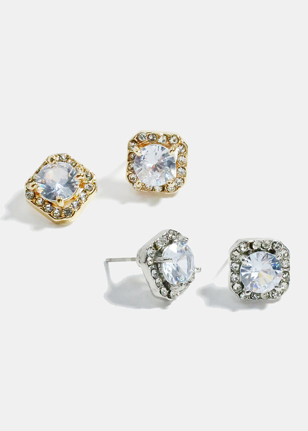 A stunning pair of rhinestone-studded square stud earrings that you can wear with your all-glam look. This classy pair of earrings will give you the perfect pop of sparkle to your ensemble effortlessly.