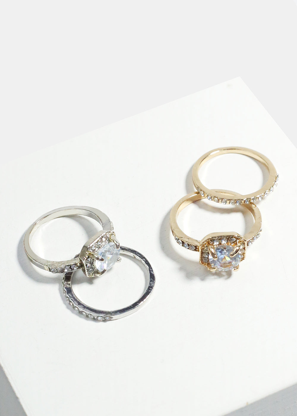 You have the option of a engagement style ring or a simple rhinestone band. Or get both to layer together!