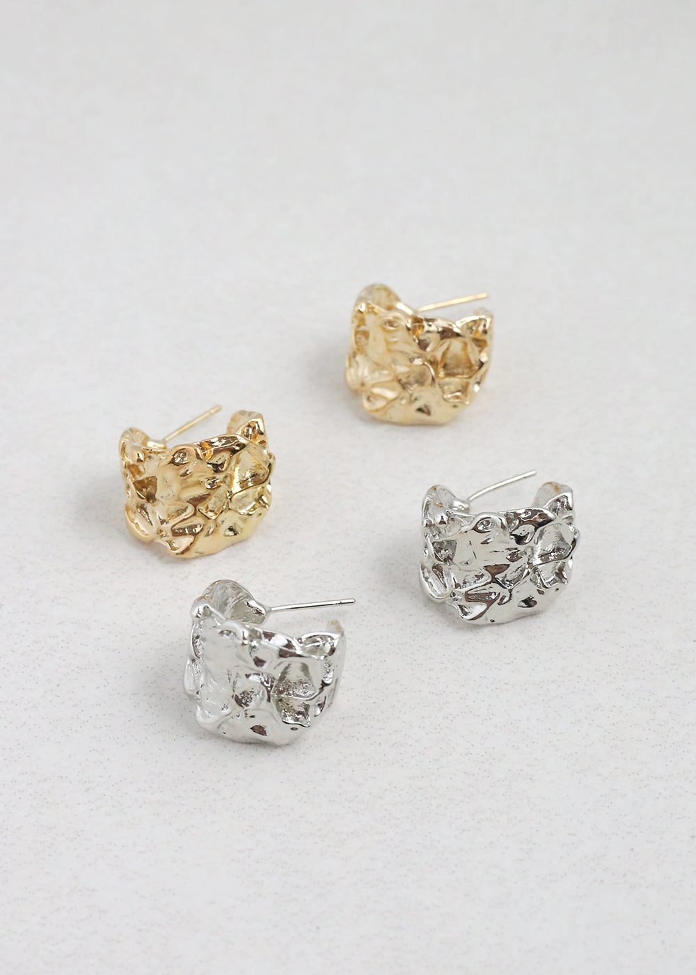 Elevate your jewelry game with these stunning textured C hoop earrings! Designed for fashion-forward individuals, these earrings feature a unique, sculptural texture that adds a bold yet sophisticated touch to any outfit. Available in both radiant gold and sleek silver finishes, these statement hoops are a must-have for your accessory collection.