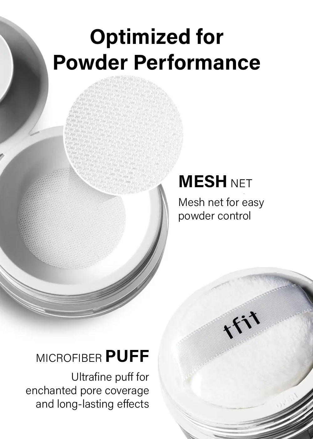 TFIT face powder thin, lightweight powder, stays put for a long-lasting finish. This loose, light setting powder has a silky texture that leaves your skin aglow on the surface without shine.