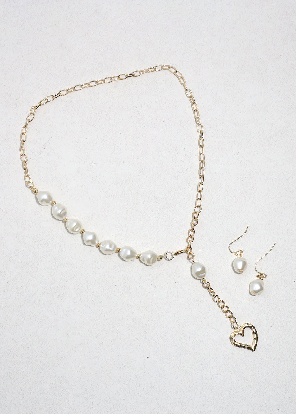 Elevate your everyday style with this modern pearl and chain heart necklace set, designed to blend timeless elegance with a fresh, contemporary edge. Featuring faux pearls paired with a sleek metal chain, this necklace creates the perfect balance of softness and structure. A delicate dangling heart charm adds a romantic finishing touch, making this set ideal for both casual days and special occasions.