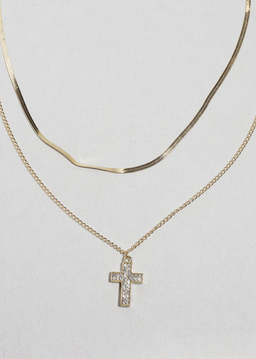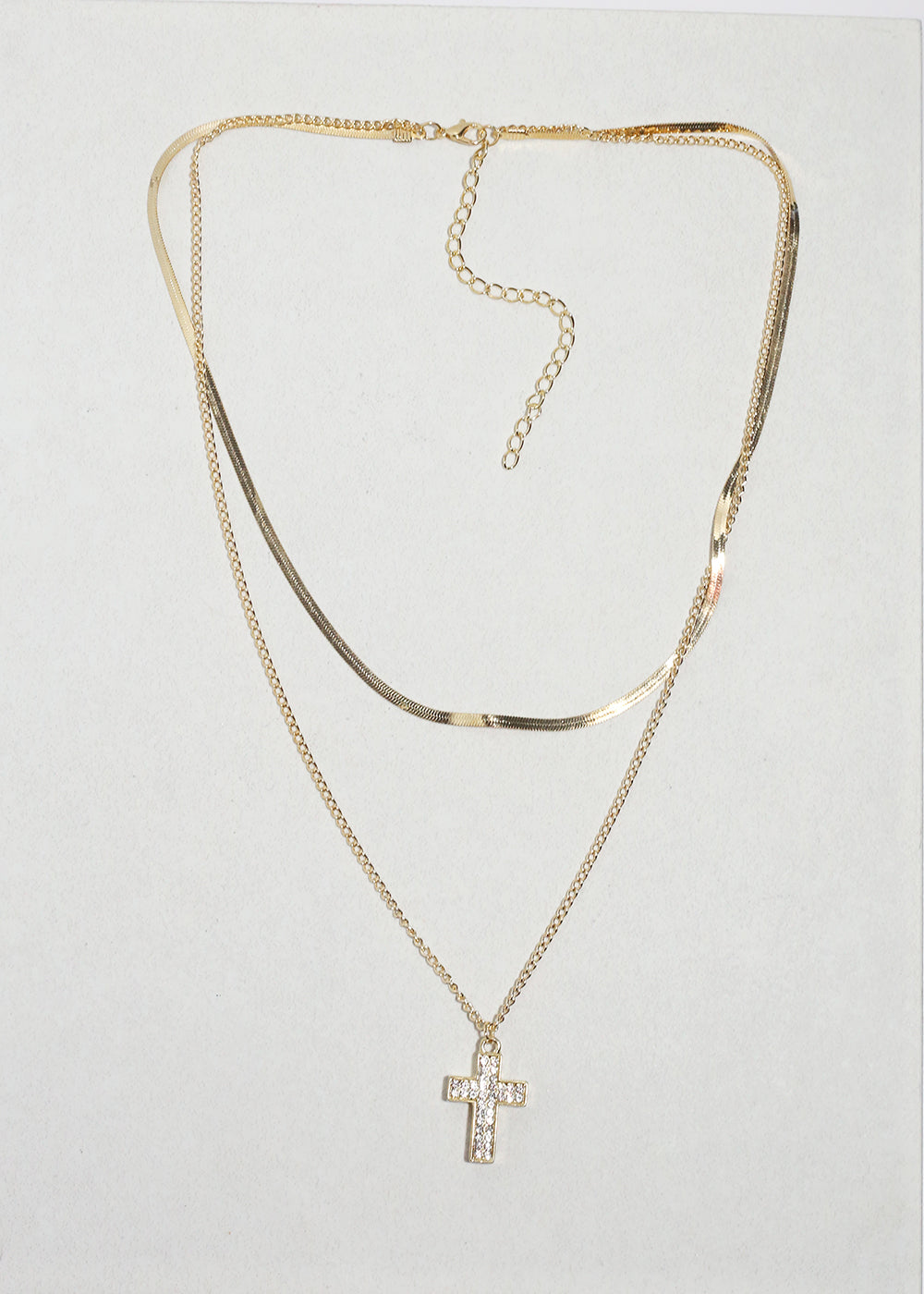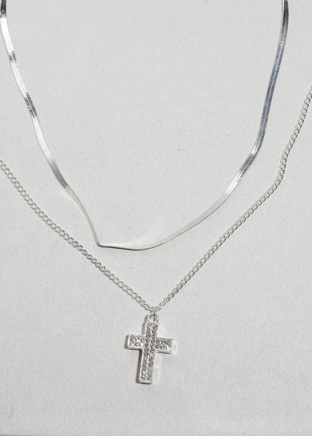 Shine bright and stay stylish with our layered cross pendant necklace. This elegant two-layer necklace features a sleek snake chain paired with a delicate link chain adorned with a sparkling rhinestone cross pendant. Available in gold and silver, it’s the perfect balance of faith and fashion — designed to elevate any outfit from casual to dressy.