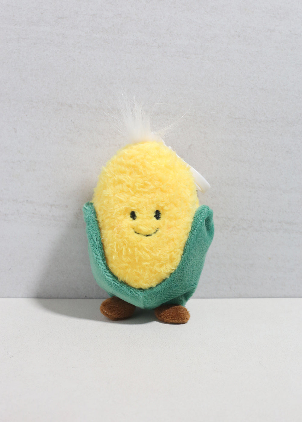 Happy Corn Plush Keychain – bright yellow, fuzzy, and sweet