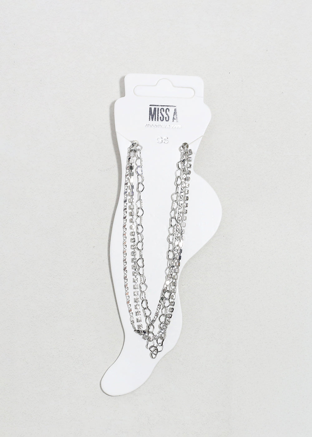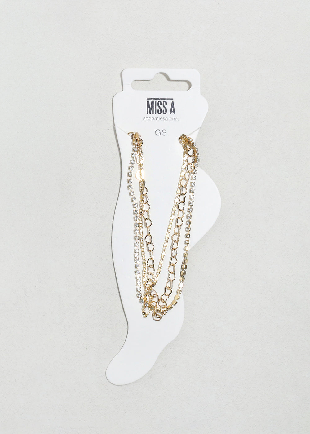 Elevate your style with this chic 3-layered anklet, available in both gold and silver finishes. Featuring a trendy mix of chain styles, this anklet adds effortless sparkle and dimension to your look. Its versatile design makes it perfect for layering with other anklets or wearing solo as a statement piece.