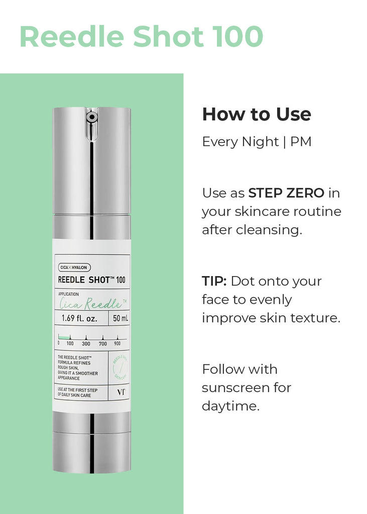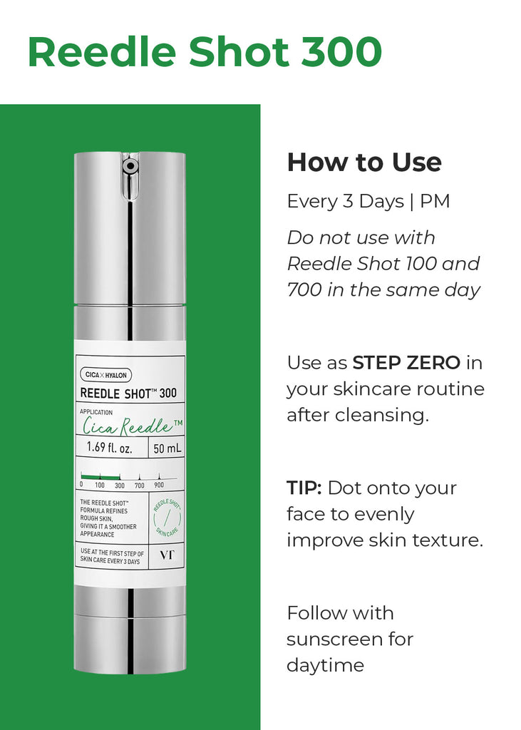 *Do not use with any beauty device. Avoid using a beauty device or LED mask with reedle shot products to prevent skin irritation that may arise due to high temperature or light exposure.