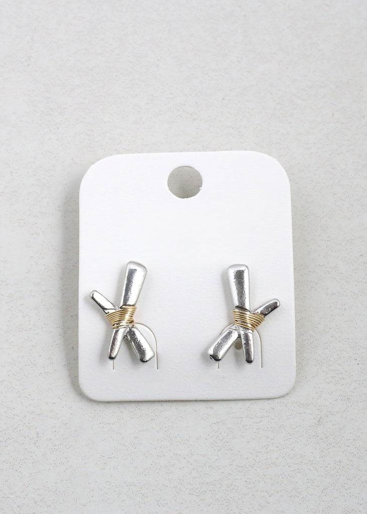 Elevate your style with these wire-wrapped hex earrings, a perfect fusion of modern elegance and artisanal charm. Featuring a sleek X-shaped hexagonal design, these earrings are crafted in gold-tone and silver-tone metal, accented with delicate wire wrapping for a unique, handcrafted finish.